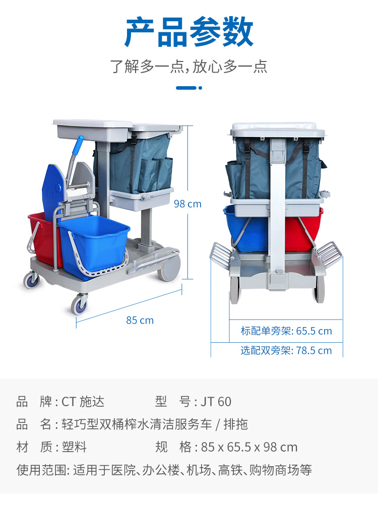 輕巧型雙桶榨水(shuǐ)清潔服務車 / 排拖 JT 60
