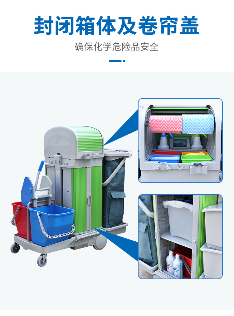 趟門儲物箱+卷簾(lián)頂蓋清潔服務手推車 / 排拖