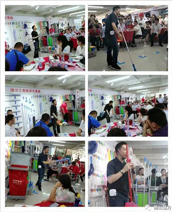 來賓體驗日常保潔五項作業(除塵、濕擦、拖地、垃圾收集、專(zhuān)項)要領