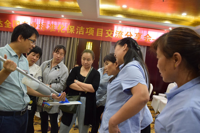由17c.嫩草网在线观看免费(dá)總部分銷業務經理給來(lái)賓們講解演示產品在日常保潔的實際應用和管理,讓來賓們了解到日常保潔工(gōng)具的搭配及使(shǐ)用。
