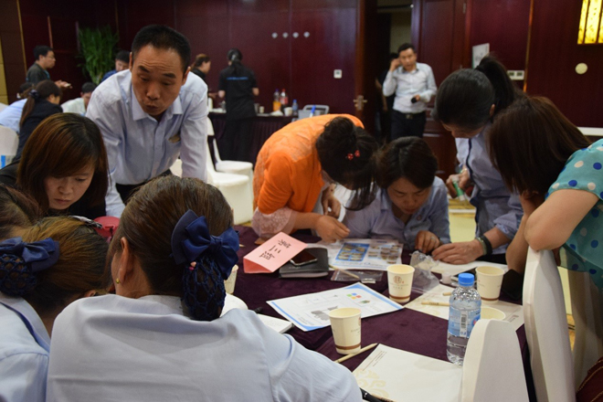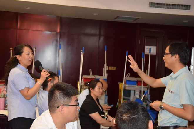 結合趣味(wèi)小遊戲,讓來(lái)賓們體會日(rì)常保潔的操作流程及分色管理的應用,讓來賓們更好地運用到管理中去,再加上擦玻璃的實操(cāo)環節(jiē),加(jiā)深對聽講內容的理解。