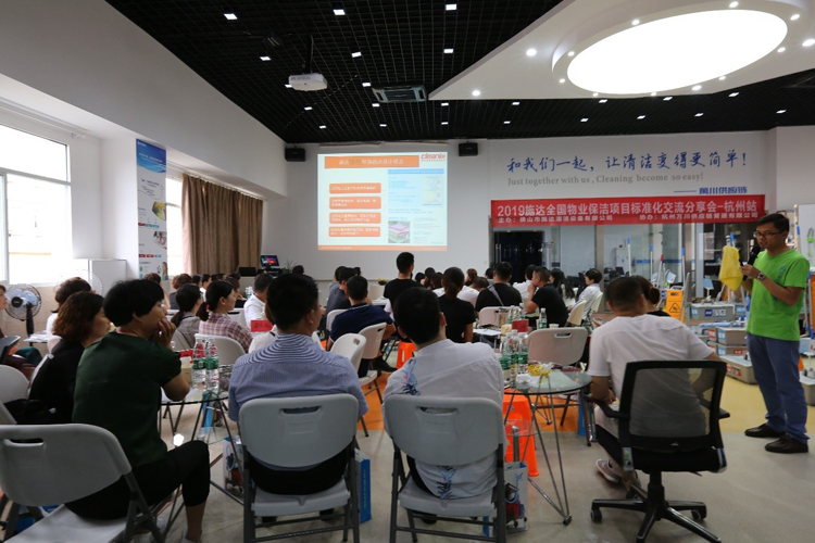 2019年6月(yuè)22日,本次交流會來到了杭(háng)州。在17c.嫩草网在线观看免费杭州地區經銷商:杭州萬川供應鏈管理有限公司的協助下,誠邀各物業(yè)管理人員齊聚一(yī)堂,圍繞預防管理——感控管理——模塊化管理——營(yíng)運(yùn)體係(培訓、考核體係),共同(tóng)探討保潔行業的現狀及未來發展方向。