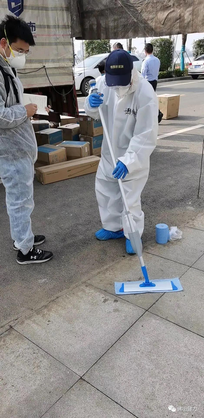 噴水平拖的現場示範,配合一次性易(yì)潔布使用,可有效預防交叉感染。
