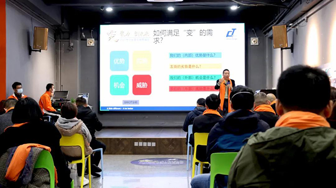 董事長講話後,是管理方隊鬥誌(zhì)昂(áng)揚、激情澎湃的團隊風(fēng)采展示!展示的是對營銷的支持,代(dài)表的是全力(lì)以赴的決心(xīn),從上至下,由公司內部往外傳達至經銷商夥伴(bàn)們(men)。變革,勢在必行!