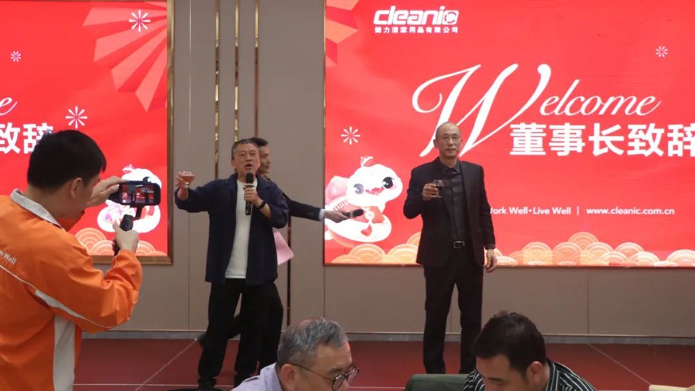 晚宴開始前,吳董向全體(tǐ)員工和來賓們分享了公司的使命、願景、價值觀,以及公司(sī)未來5年(nián)的發展戰略。黃董則肯(kěn)定了各部門(mén)及同(tóng)事們在2024年(nián)所取得(dé)的進(jìn)步,並(bìng)向(xiàng)全(quán)體同事與(yǔ)現場嘉賓致以新年的(de)問候。