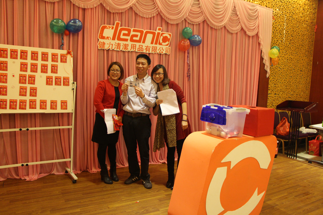 春(chūn)暖花開, 2015年健力清潔用品集團公司已於3月13日(星期五)舉行春茗活動(dòng). 當天全體公司同事聚首一堂(táng), 場麵熱鬧. 晚會中有頒獎、遊戲節目、抽獎、等精彩環節。我們在這歡聲笑語,美酒佳肴中度過(guò)了一個(gè)璀璨的晚上。