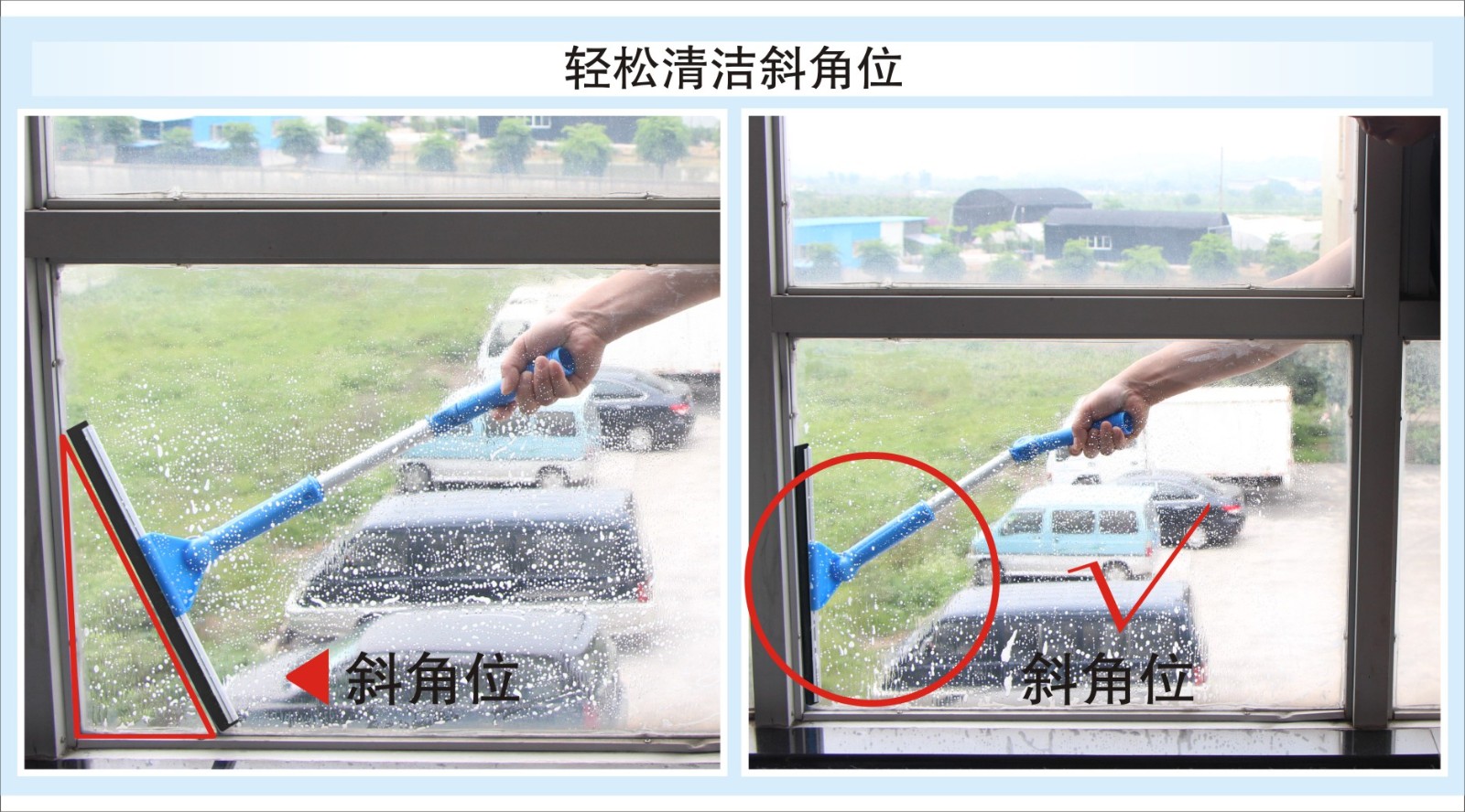 同時(shí),也可配合(hé)調向短杆(gǎn)使用,清潔戶外玻璃時也能輕鬆到位(wèi)。