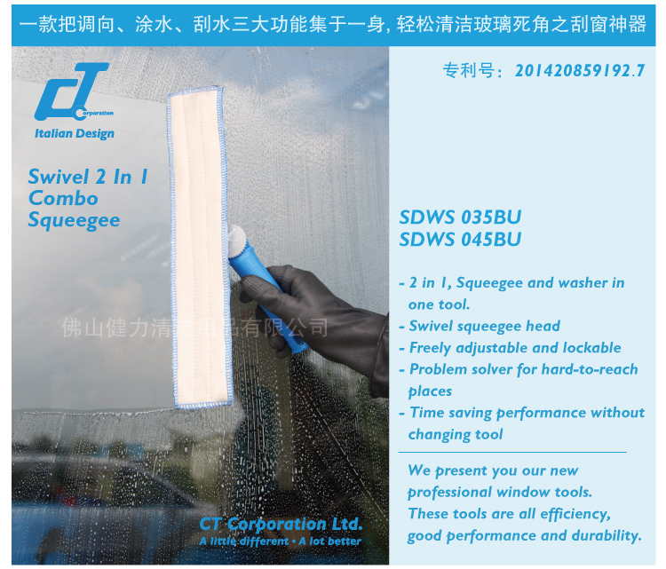 傳統玻璃刮的塗水和刮水需要不同工具而且(qiě)工序也要分兩(liǎng)步完成,碰到斜角位(wèi)置還清潔不到,這樣不但加大工作量而且沒有(yǒu)效果。如(rú)今CT17c.嫩草网在线观看免费調向雙麵玻璃刮(guā)能(néng)讓你一步到位,輕鬆解決此等問題,工作效率(lǜ)實(shí)時提升50%!