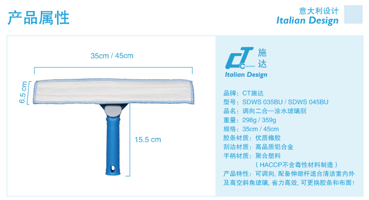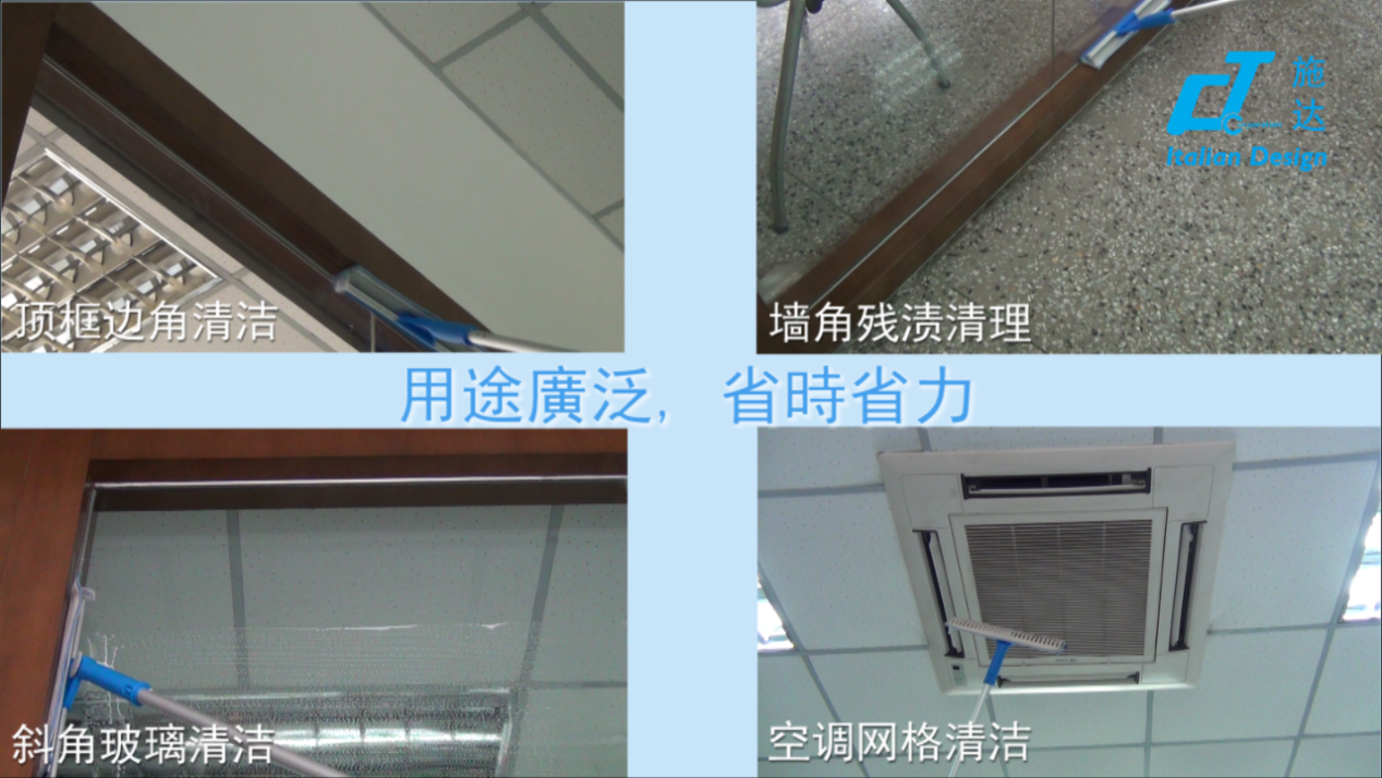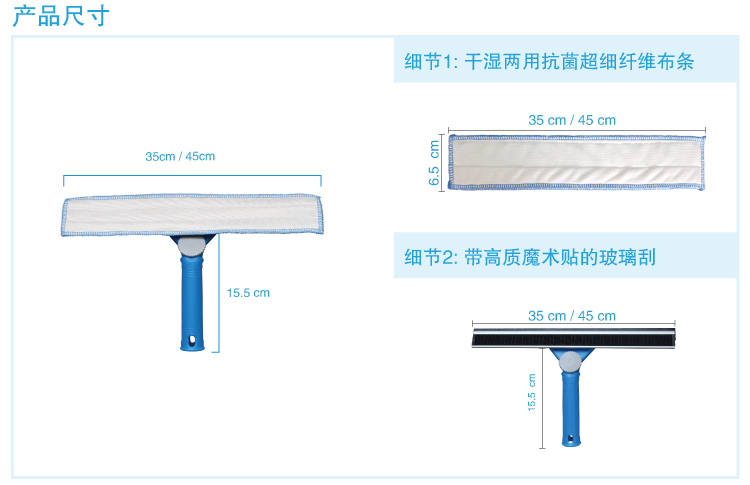 貫徹綠色環保清潔概(gài)念;膠條、魔術貼、清潔布、鋁合金條及(jí)調向手柄等各個配件均(jun1)可(kě)輕鬆更換,同時可以(yǐ)匹(pǐ)配一杆通用(yòng)的快(kuài)接鋁杆,大大減低使用成本。