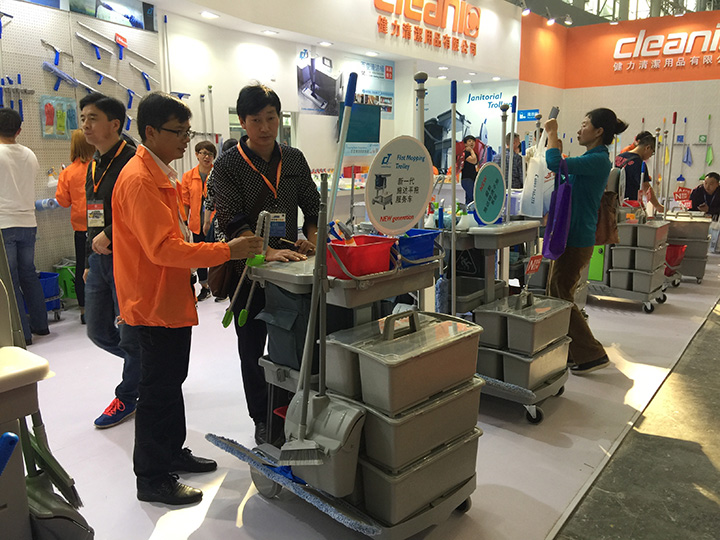 此次展會期間,健力集(jí)團展示了全(quán)新的產品及配套係統,包括Columbus德國奧林匹斯機械,CT17c.嫩草网在线观看免费清潔工(gōng)具(jù)係列(liè),新產品百變清潔桶及清潔間標準化示範區。參觀客戶都對健力集團的展品(pǐn)表示極大的興(xìng)趣及好評。